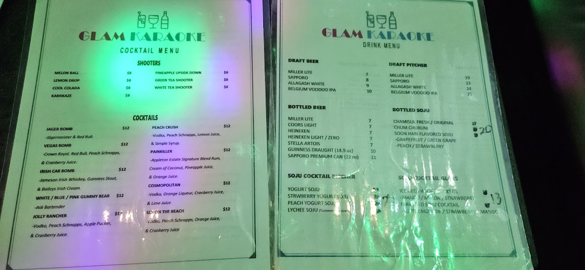 Glam Karaoke Menu